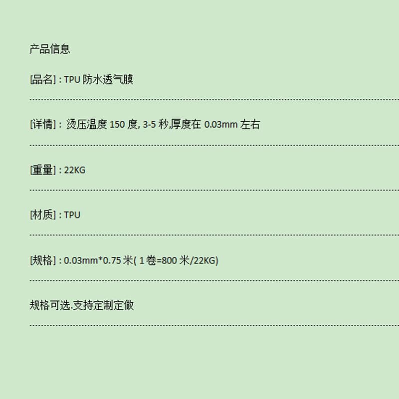 產品名稱:TPU防水透氣膜透明