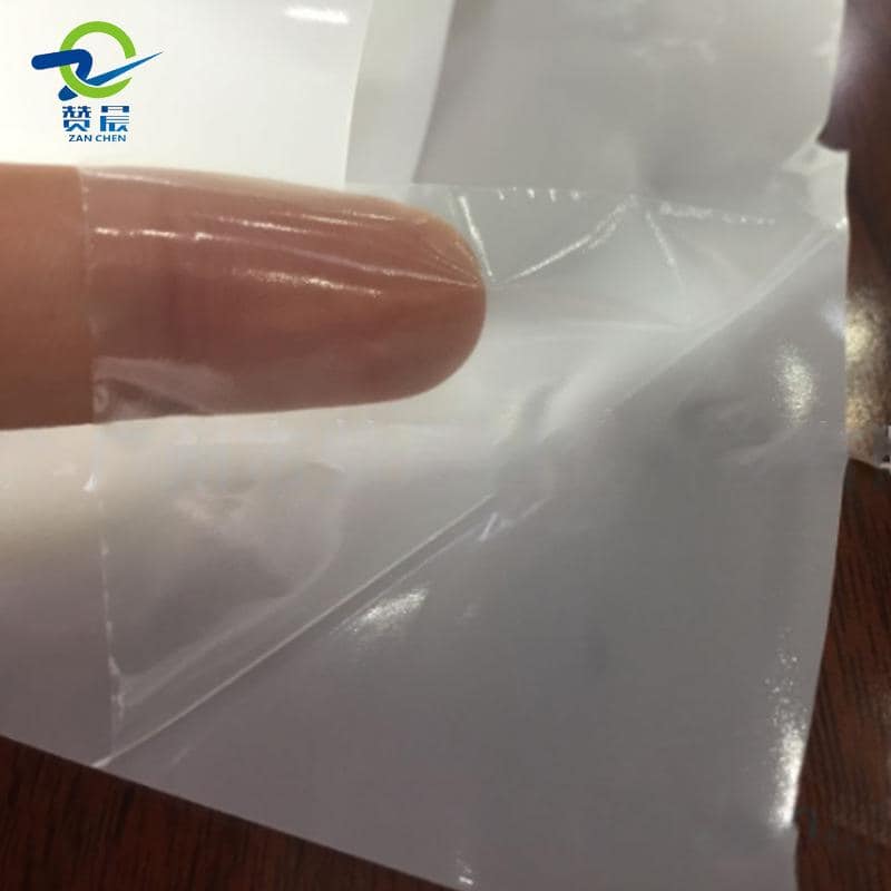 產(chǎn)品形態(tài):薄膜+PE、離型紙、、opp、pet,表面為霧面,熱貼合后呈透明的狀態(tài)。